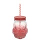 COPO EM VIDRO CORUJA TAMPA ALUMINIO E CANUDO 420 ML VERMELHA - 99766