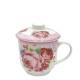 CANECA PORCELANA COM TAMPA E DIFUSOR 300 ML FLORES RS - GDCH1105-B
