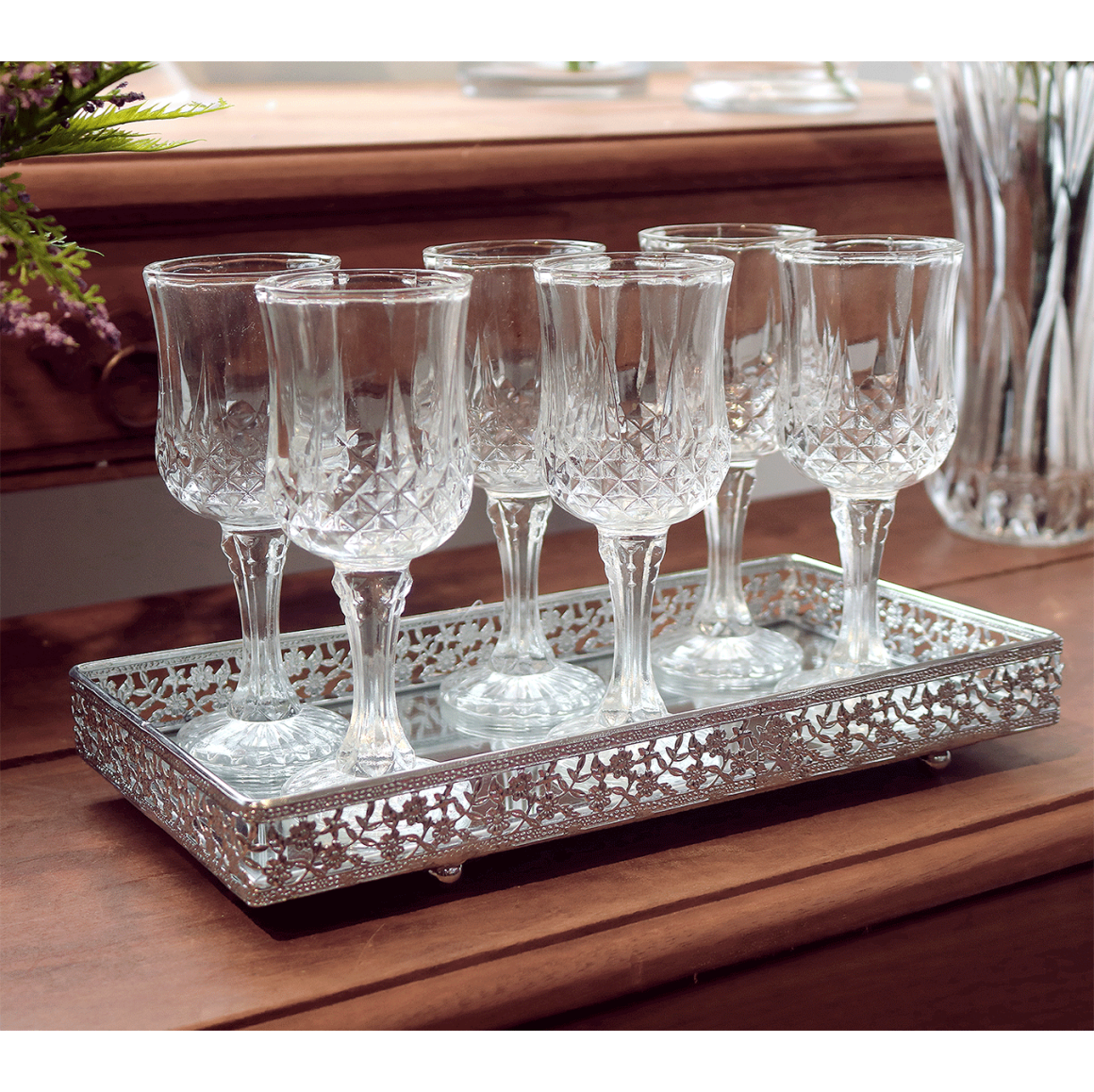 JOGO DE TACA DECORADA EM VIDRO COM 6 PECAS 16 CM - 97462(SS7272)