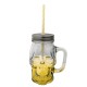 CANECA POTE COM CANUDO CAVEIRA DE VIDRO AMARELO 500ML TAMPA PRATA