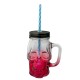 CANECA POTE COM CANUDO CAVEIRA DE VIDRO VERMELHO 500ML TAMPA PRETA