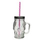 CANECA POTE COM CANUDO CAVEIRA DE VIDRO INCOLOR 500ML TAMPA PRETA