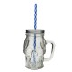 CANECA POTE COM CANUDO CAVEIRA DE VIDRO INCOLOR 500ML TAMPA PRATA