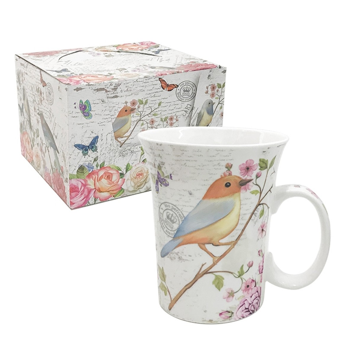 CANECA PASSAROS 320ML DE PORCELANA COM CAIXA MODELO C