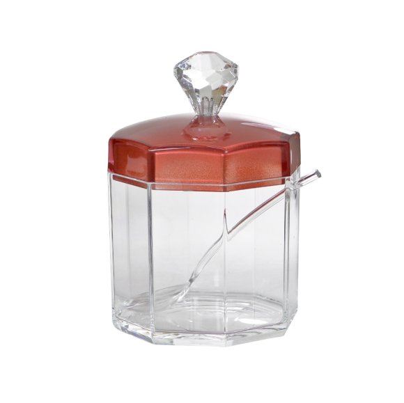 AÇUCAREIRO SEXTAVADO COM COLHER E TAMPA EM ACRÍLÍCO - MG5117A-GR