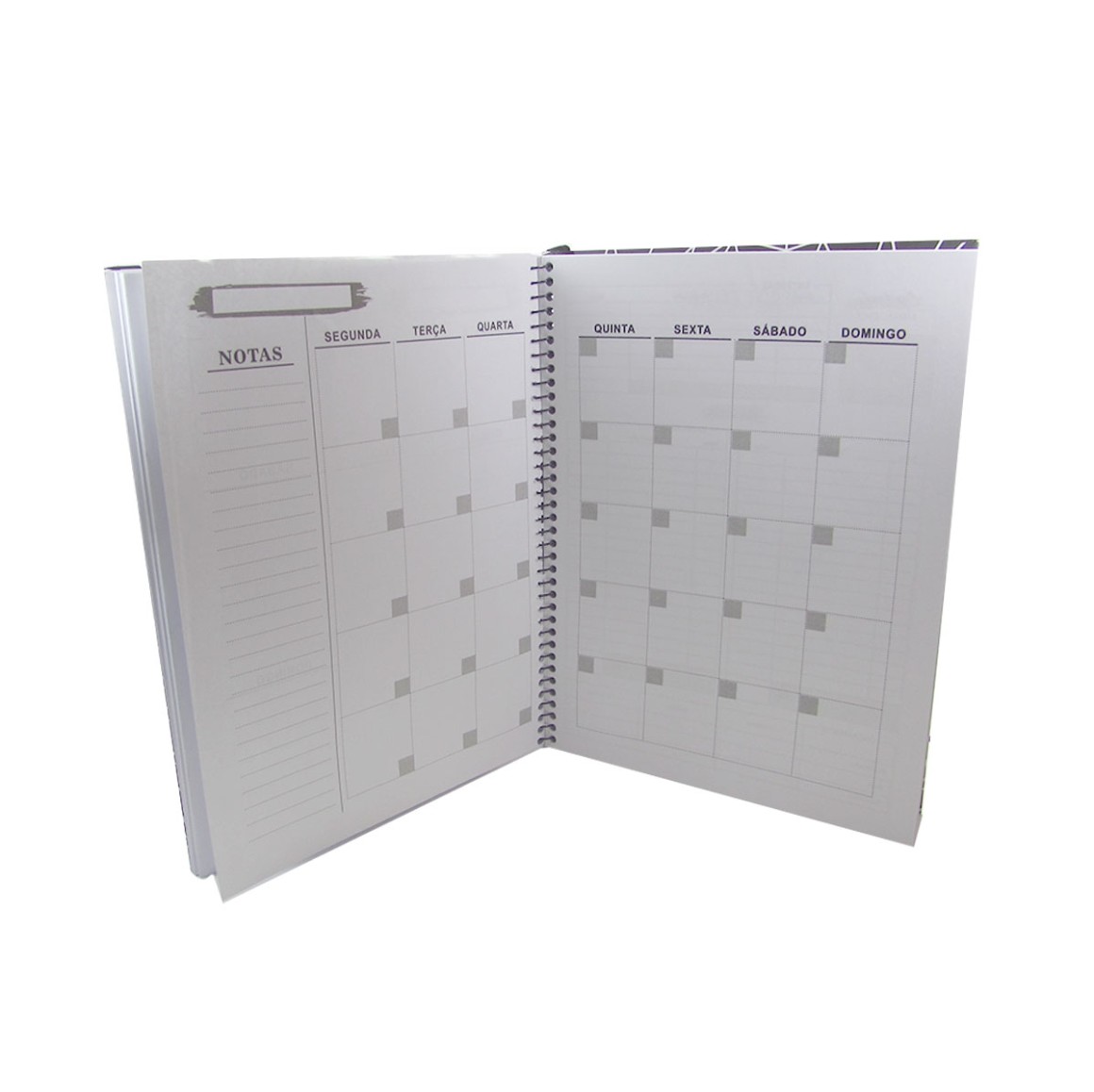- Campo para dados pessoais, aniversários, organização de tarefas semanais, controle financeiro e mapa do Brasil.