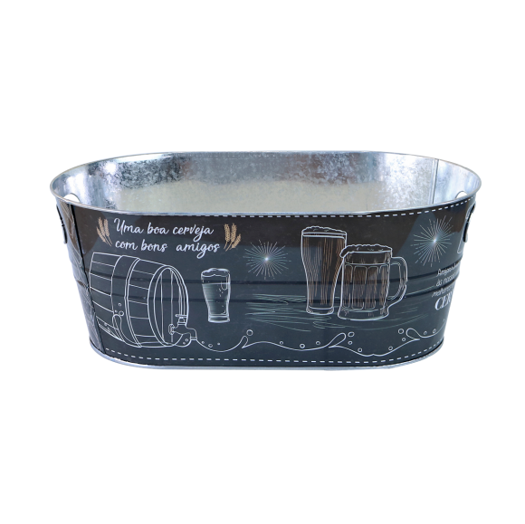 BALDE DE GELO DECORADO DE METAL RETANGULAR PARA CERVEJA 7,6L - CA12216-A