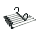 Cabide com espaço para 5 calças. Solucione o problema de espaços em seu guarda roupas ou closet, colocando 5 peças em um único cabide. Cabide é produzido em metal extremamente durável. Permite duas funcionalidades sendo estas horizontal ou vertical, facilitando na organização e salvando espaços.