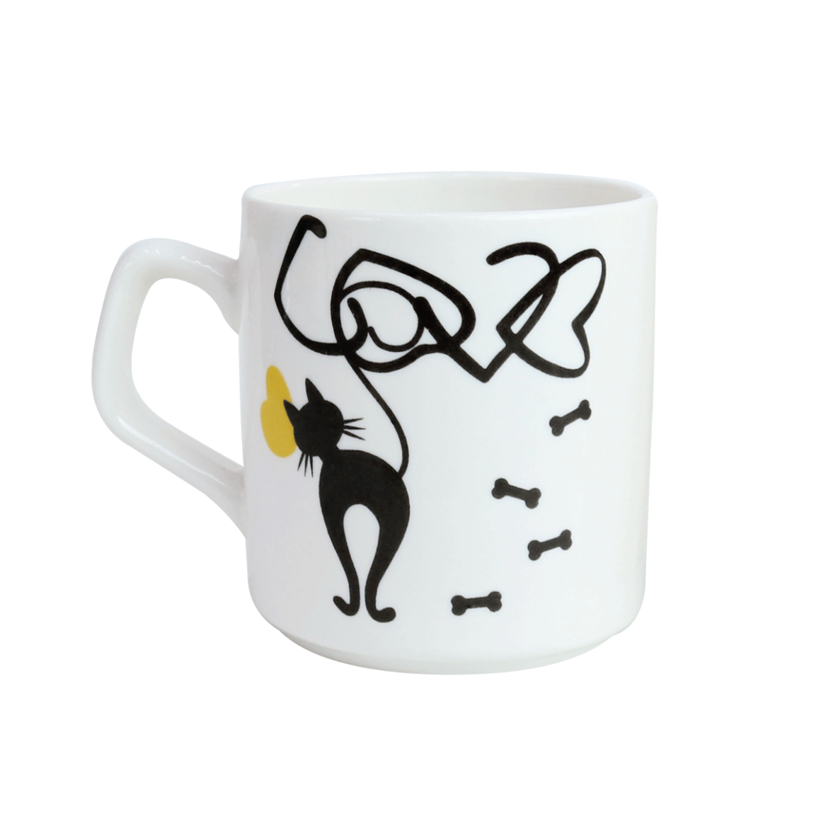 CANECA DE PORCELANA BRANCA COM ESTAMPA DE GATO 220ML - CA18009-A.