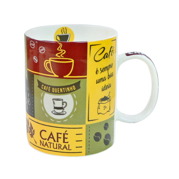 CANECA DE PORCELANA COM FRASES CAFÉ 390ML - CA18003-A