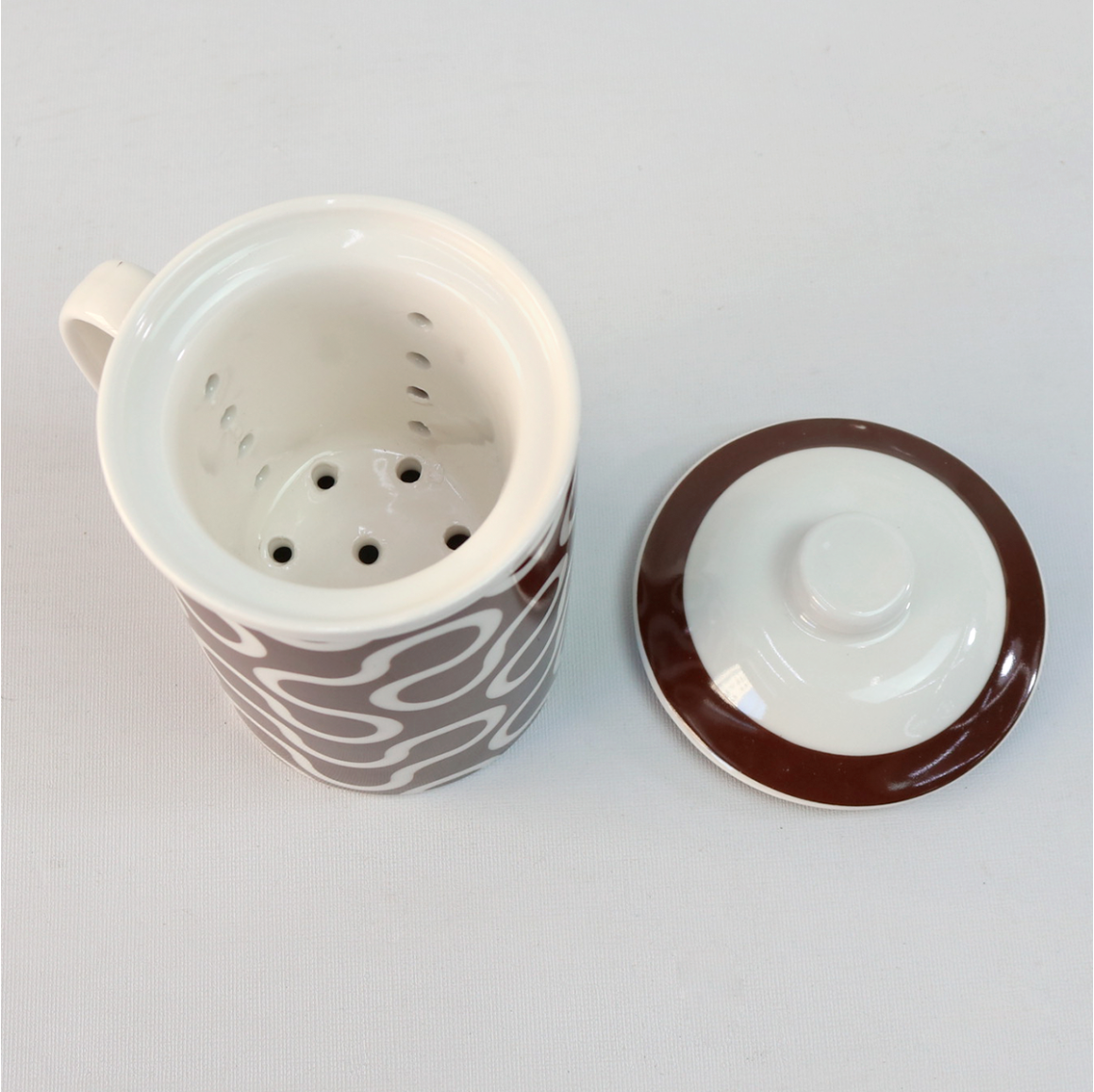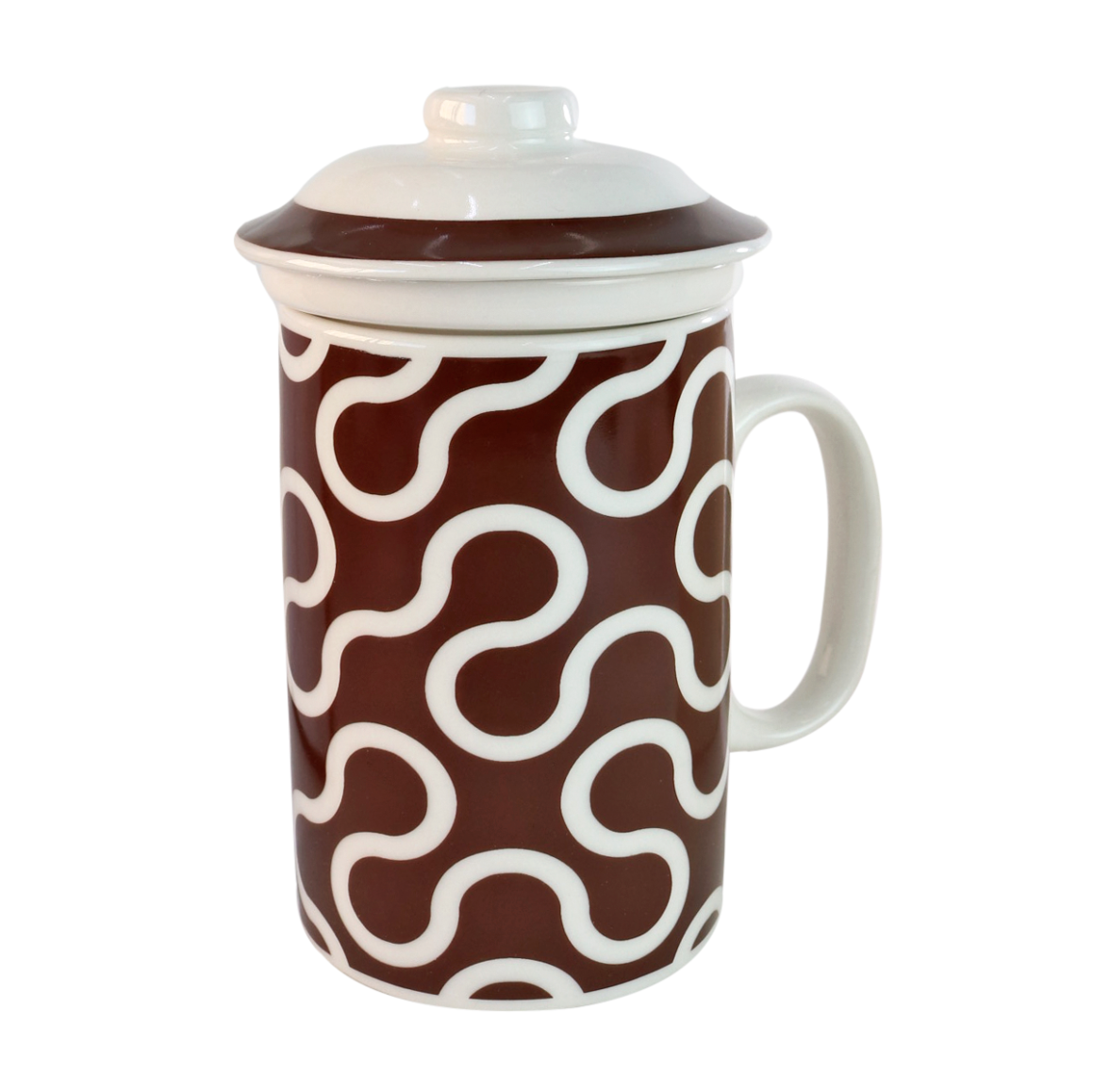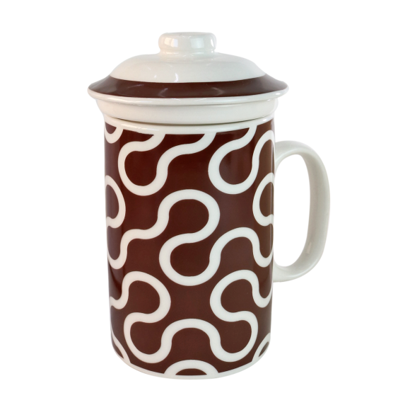CANECA PORCELANA COM INFUSOR E TAMPA FORMAS GEOMÉTRICAS 310ML - PRC10047-A