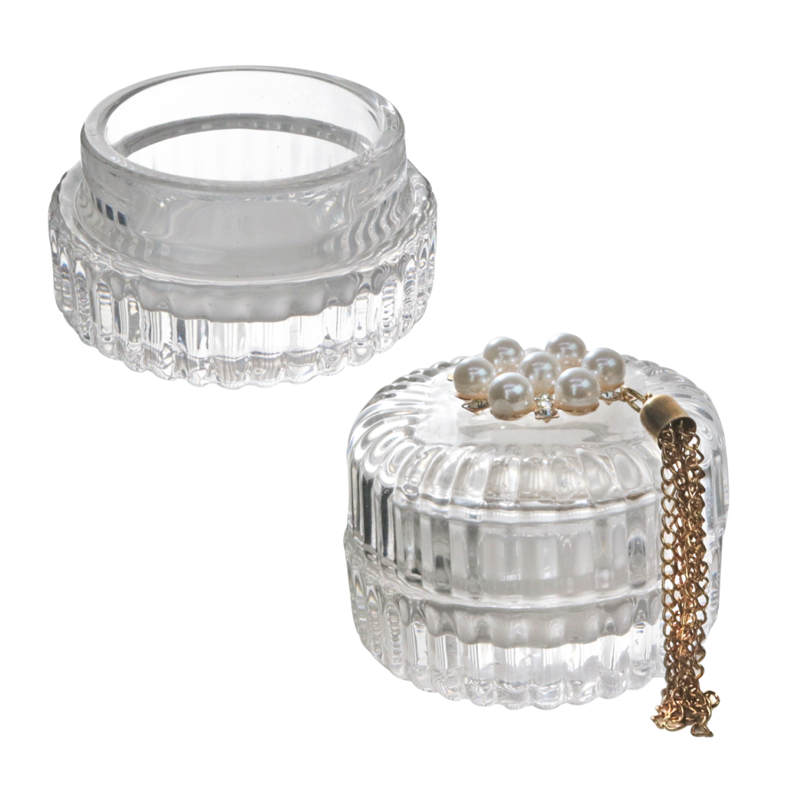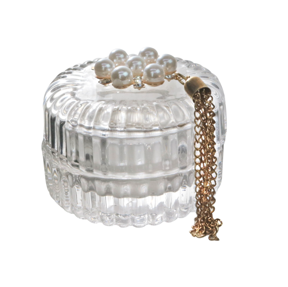 CASTIÇAL EM VIDRO COM TAMPA E PENDENTE 4,8CM - GA10045-B