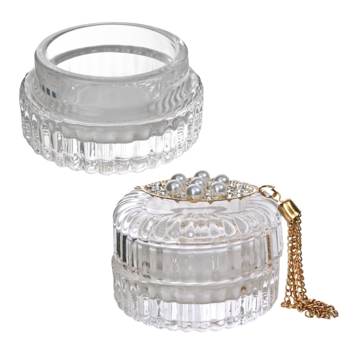 CASTIÇAL EM VIDRO COM TAMPA E PENDENTE 4,8CM - GA10045-C