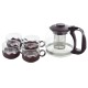 CHALEIRA DE VIDRO COM INFUSOR 1200ML + 04 XICARAS 150 ML MARROM-VDA1506-MR
