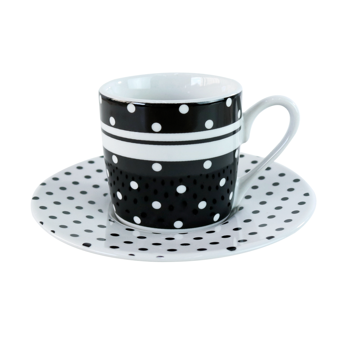 CONJUNTO DE 06 XÍCARAS PARA CAFÉ DE PORCELANA BLACK DOTS 50ML - 8327