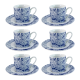 CONJUNTO DE 06 XÍCARAS PARA CAFÉ DE PORCELANA BLUE FLORAL 50ML - 8328