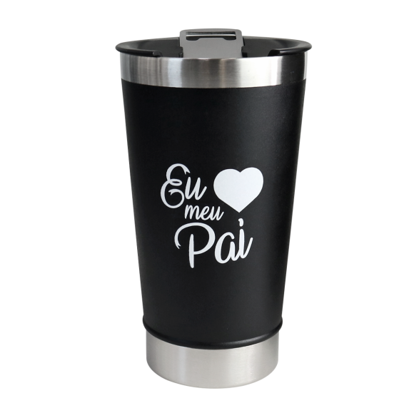 COPO TÉRMICO DE INOX COM TAMPA E ABRIDOR "EU AMO MEU PAI"- HG85053-A