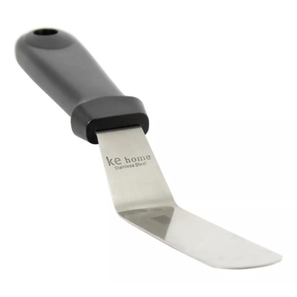 ESPATULA CURVA PARA CONFEITAR EM INOX E CABO PLASTICO 15,5 CM .