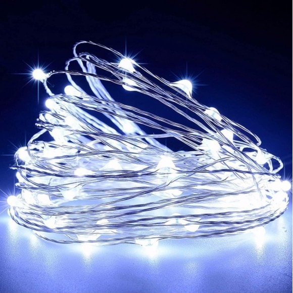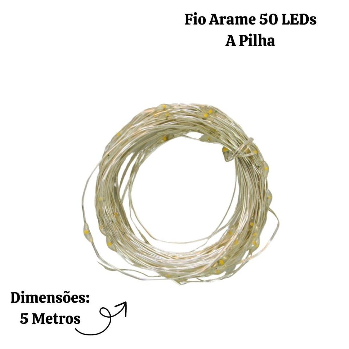 FIO ARAME COM 50 LEDS BRANCA A PILHA - 25004