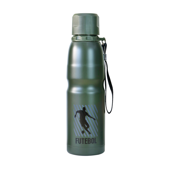 GARRAFA AÇO INOX COM ALÇA VERDE FUTEBOL 750ML - LC1628A-VD.