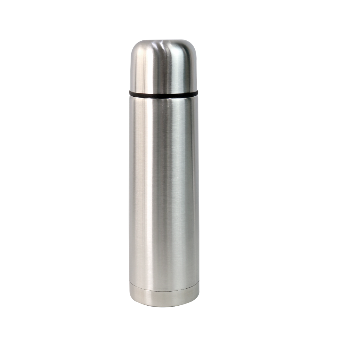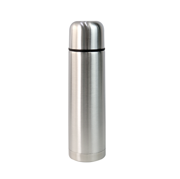 Garrafa isotérmica inquebrável em aço inox. Possui fechamento por vácuo. A tampa pode ser utilizada como caneca.