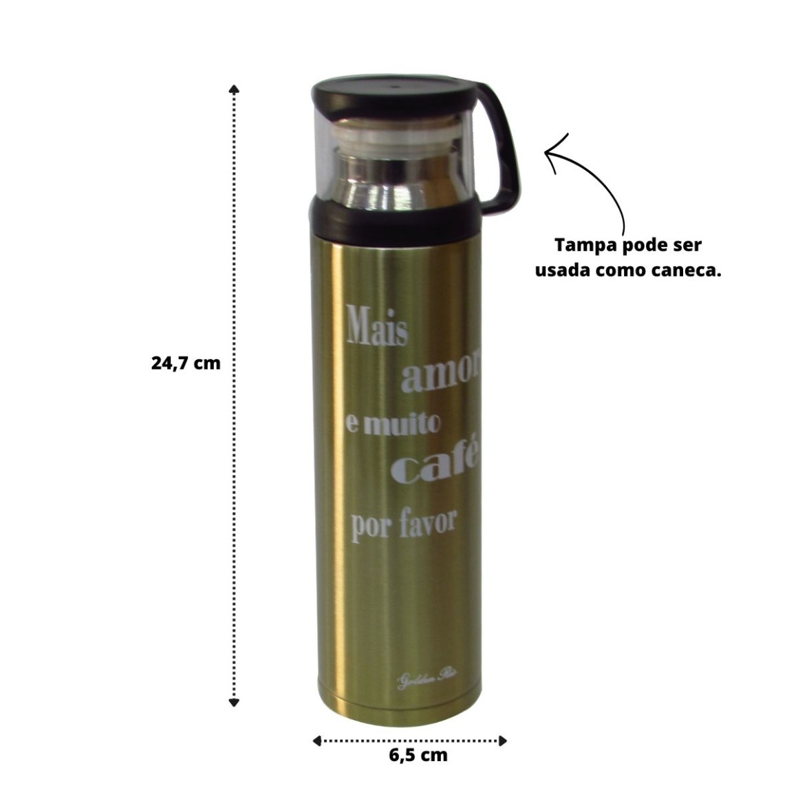 GARRAFA ISOTÉRMICA DE INOX COM FRASE E TAMPA COM COPO PARA SERVIR- 450 ML - GDR0085-DOU1