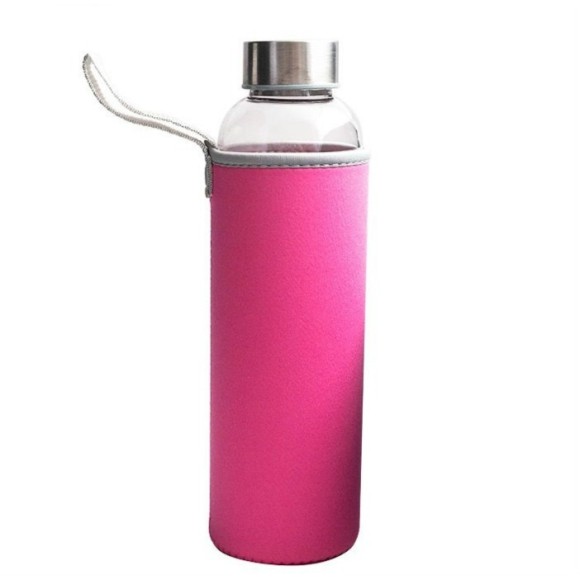 GARRAFA SQUEEZE DE VIDRO REVESTIDA COM CAPA NEOPREME 500ML - YT7104-RS.