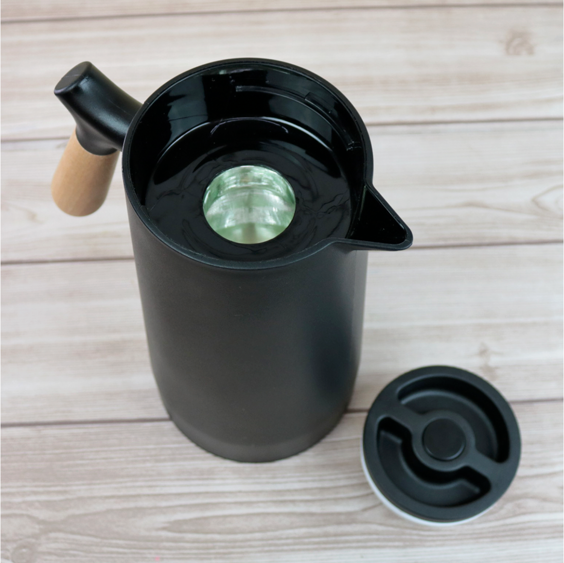 GARRAFA TÉRMICA POTTY PRETA 1 LITRO COM CABO MADEIRA - D1036