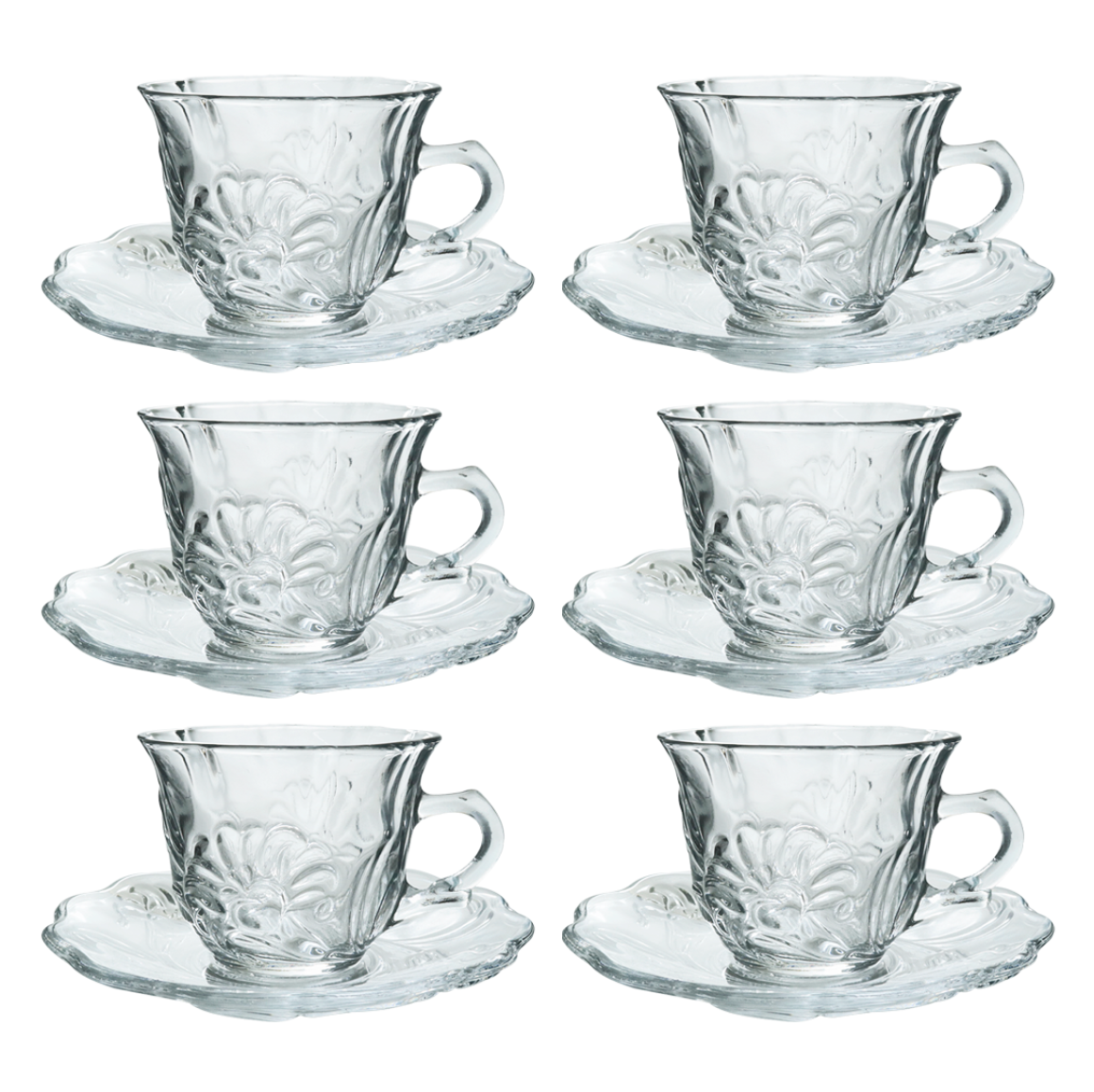 JOGO DE 6 XÍCARAS E 6 PIRES DE VIDRO COM 12 PEÇAS 125ML - BM0386