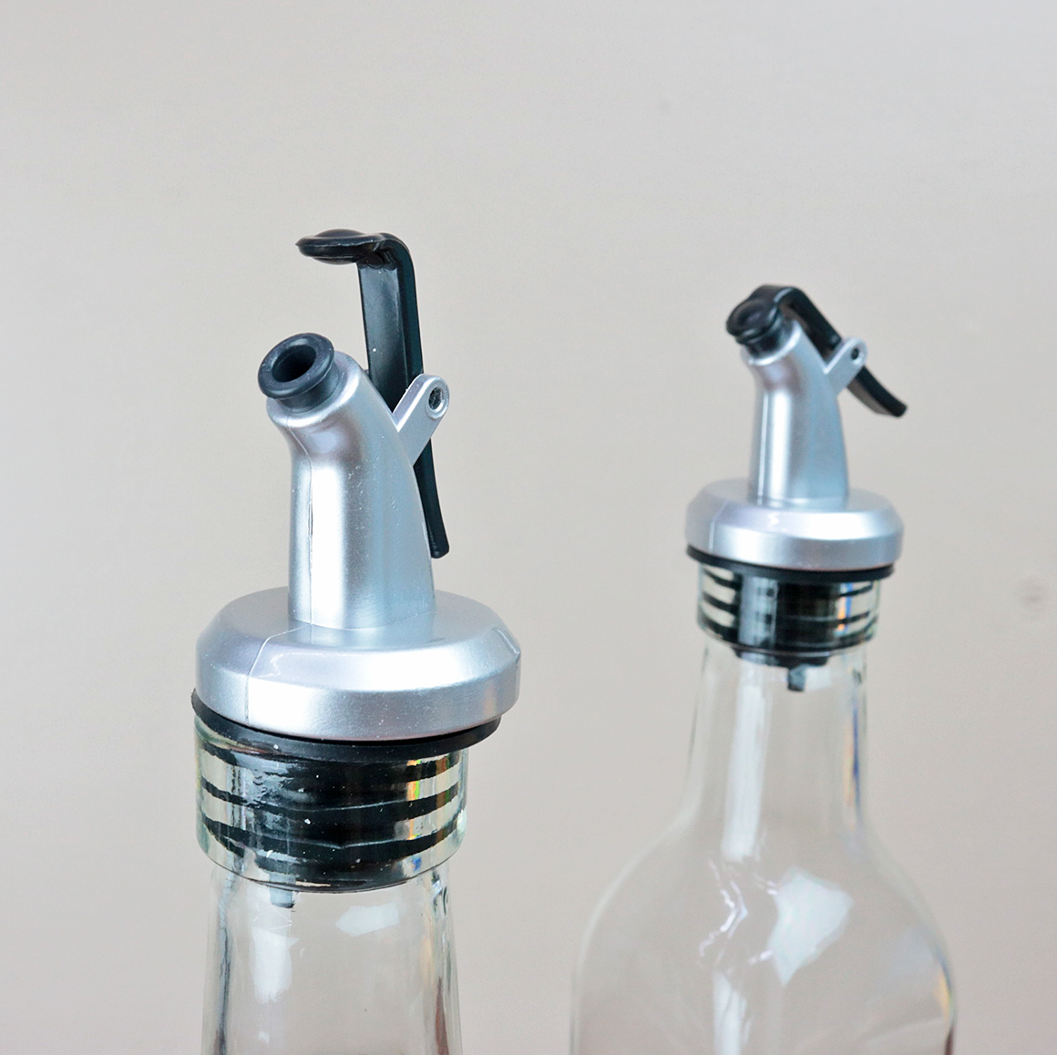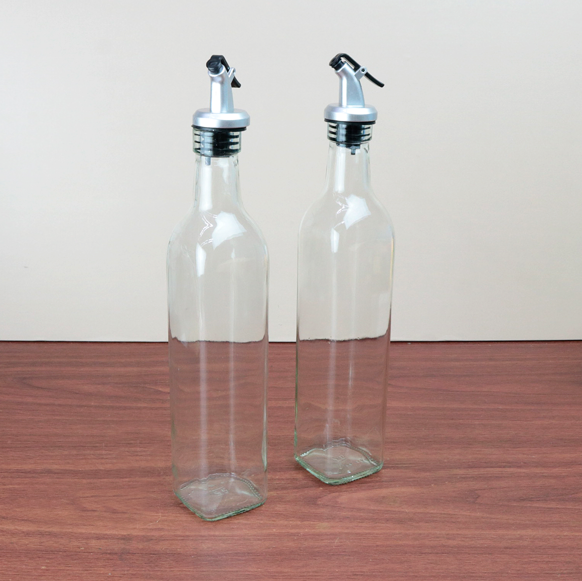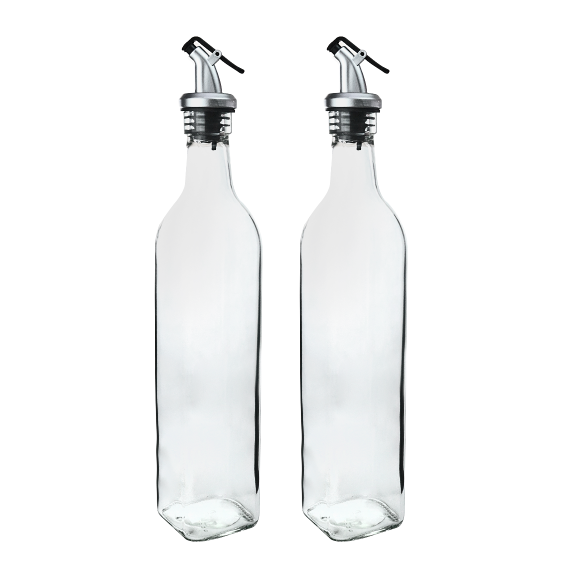 O corpo em vidro transparente permite acompanhar o nível e a pureza do conteúdo, enquanto o formato clássico combina com qualquer cozinha ou mesa posta. As tampas oferecem fechamento seguro, evitando respingos e protegendo o sabor.