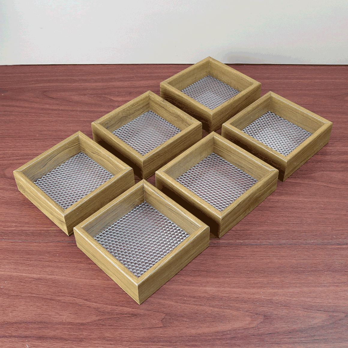 Medida das petisqueiras: 12cm x 12cm x 4 cm (CxLxA).