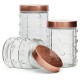 JOGO DE POTE DE VIDRO 03 PEÇAS E TAMPA EM INOX GOLD ROSE - VDA0405