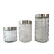 JOGO DE POTE DE VIDRO COM 03 PEÇAS E TAMPA EM INOX - PORTA CONDIMENTOS