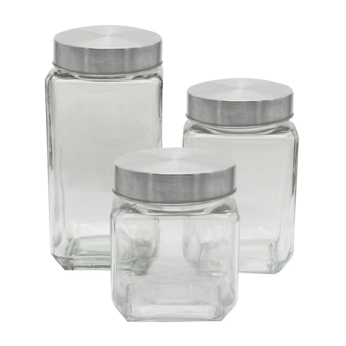 JOGO DE POTES DE VIDRO COM TAMPA METAL ESCOVADO 3 PEÇAS - CA16043