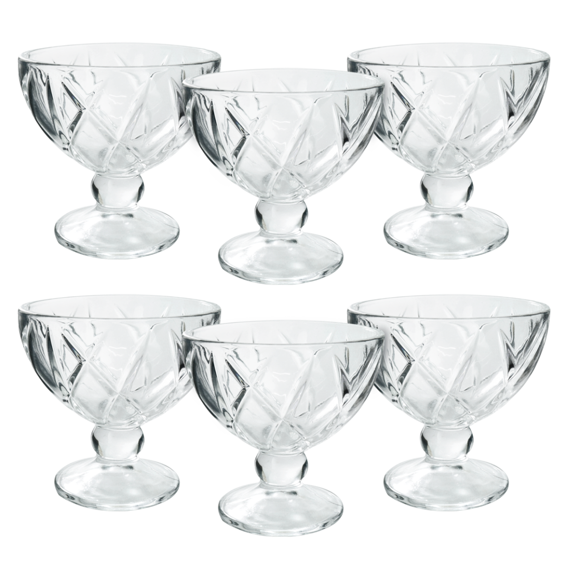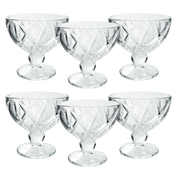 Consiste em um conjunto de taças feitas de vidro transparente com capacidade para 250ml, que as torna ideiais para servir uma variedade de sobremesas desde mousses e sorvetes até frutas em calda e pudins.