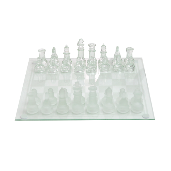 JOGO DE XADREZ COM TABULEIRO E PEÇAS DE VIDRO 25X25CM - IM42046.