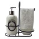 Sofisticado kit com porta sabonete líquido, porta sabonete em barra e suporte