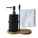 Conjunto para banheiro é a maneira ideal de organizar e decorar de forma elegante. Contém 3 peças sendo uma tolha, um suporte de metal com base em bambu e um porta sabonete líquido.
