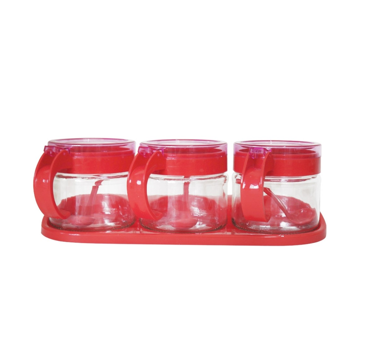 KIT COM 03 PEÇAS DE PORTA CONDIMENTO DE 300 ML COM COLHER E SUPORTE - CA09648-VM