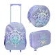 tema de flocos de neve. Este conjunto inclui uma mochila de rodinha, uma