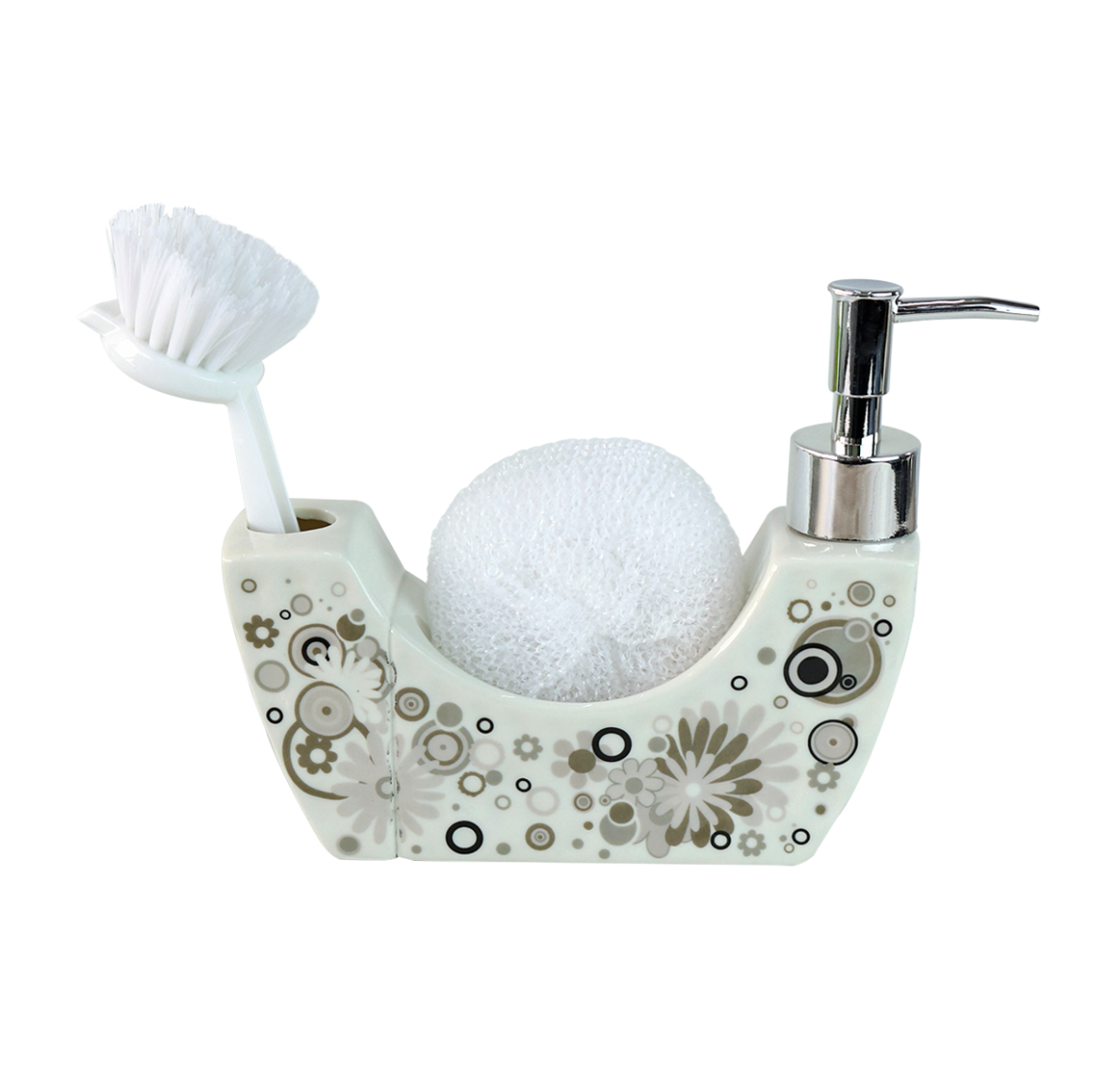 KIT PORTA SABONETE LÍQUIDO PORCELANA COM ESCOVA E ESPONJA - JRB21812-B