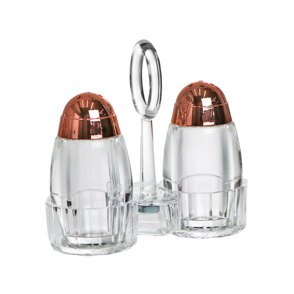 KIT SALEIRO E PIMENTEIRO COM SUPORTE EM ACRILICO GOLD ROSE - MG5115