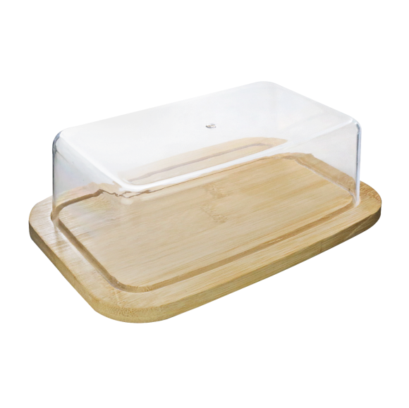 MANTEIGUEIRA DE BAMBU COM TAMPA DE PLÁSTICO 19X12,5CM - 6548
