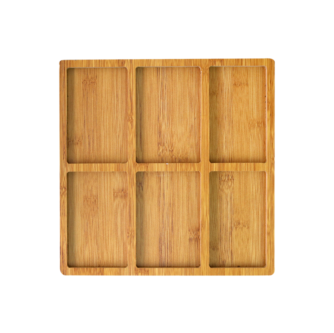 Petisqueira de madeira quadrada como 06 divisórias é perfeita para servir petiscos.A madeira possui o tamanho e leveza ideal para ser utilizado em várias situações.