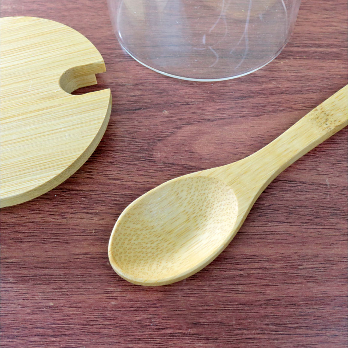 PORTA CONDIMENTO DE VIDRO COM TAMPA E COLHER DE BAMBU 280ML - DT6616
