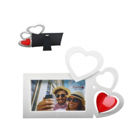 PORTA RETRATO DE PLÁSTICO 10X15 COM TRÊS CORAÇÕES - CHI1478