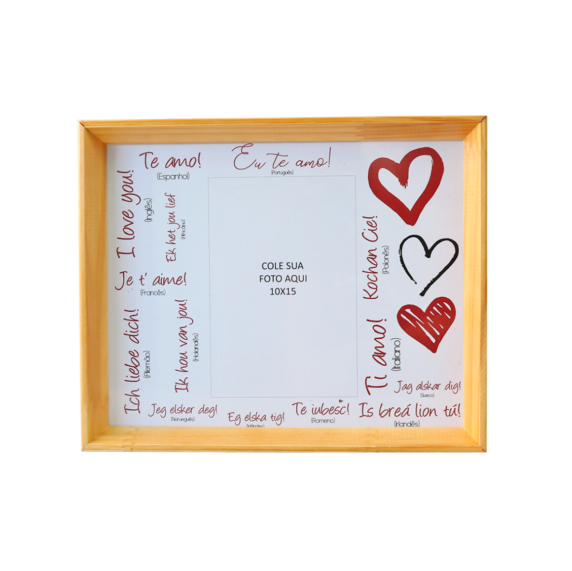 O Porta-retrato de madeira com frases de amor é um objeto decorativo encantador e significativo, projetado para exibir uma fotografia especial de tamanho 10x15cm que deverá ser colada. Esse tipo de porta-retrato é especialmente apreciado por casais ou pessoas que desejam celebrar momentos românticos e afetivos. A moldura é feita de madeira de alta qualidade, que pode variar em tons, desde madeira natural até acabamentos pintados ou envernizados. A madeira adiciona um toque rústico e aconchegante à decoração, tornando o objeto mais cativante.