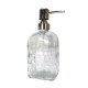 Porta sabonete líquido de vidro transparente com detalhes.