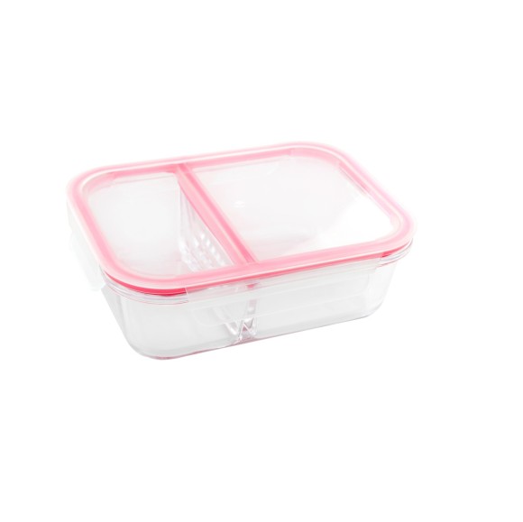 POTE COM DIVISÓRIA EM VIDRO E TAMPA EM PLÁSTICO 950 ML - CA12231-ROSA