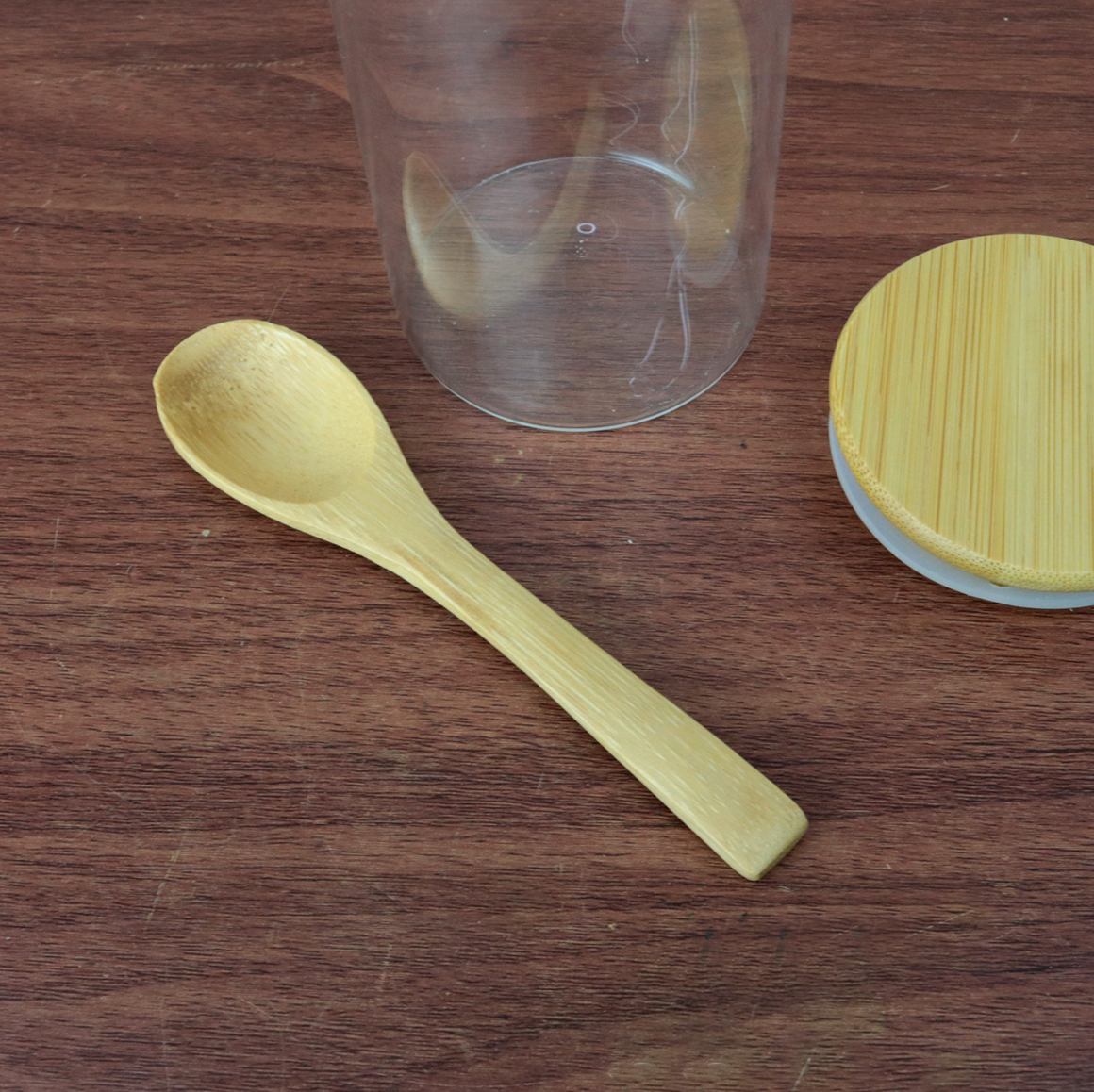 A tampa de bambu com vedação em silicone garante fechamento hermético, protegendo o conteúdo contra umidade e impurezas. A colher de bambu acoplada oferece praticidade no uso diário, além de adicionar um toque natural e elegante à cozinha.